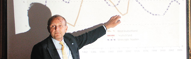 Prof. Wolfgang Franz, Mitglied des Kronberger Kreises und heutiger Vorsitzender des Sachverständigenrates zur Begutachtung der wirtschaftlichen Lage der Bundesrepublik Deutschland, referiert über die Unterschiede zwischen dem deutschen und dem US-amerikanischen Arbeitsmarkt.