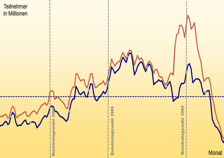 Die Stiftung Marktwirtschaft verfolgt in regelmäßigen Abständen die aktive Arbeitsmarktpolitik der Bundesregierung. Denn die aktive Arbeitsmarktpolitik ist in der Vergangenheit immer wieder dazu missbraucht worden, die Arbeitsmarktentwicklung unrealistisch positiv darzustellen, weil die Teilnehmer aus der offiziellen Arbeitslosenstatistik herausfallen. Für März 2006 ergibt sich das folgende Bild: