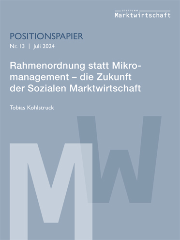 Die Vorstellung, dass eine Marktwirtschaft nur dann zu sozial oder ökologisch verträglichen Ergebnissen führen kann, wenn der Staat sie entsprechend reguliert, beruht auf dem elementaren Missverständnis, dass ökonomische Effizienz und soziale Gerechtigkeit grundsätzlich Gegensätze sind. Erst der durch marktwirtschaftlichen Wettbewerb und unternehmerisches Gewinnstreben geschaffene Innovationsprozess und Wohlstand ermöglichen sozialstaatlichen Ausgleich und dauerhafte gesellschaftliche Solidarität.