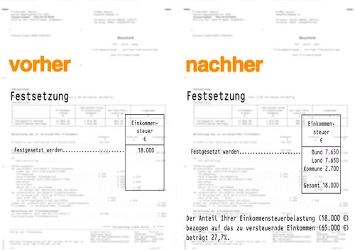 So könnte das für den Steuerzahler auf dem Einkommensteuerbescheid aussehen: