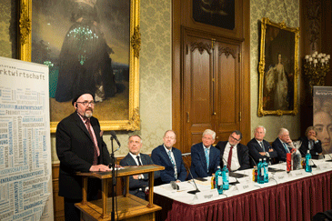 In seiner Laudatio auf den Preisträger hob Prof. Dr. Berthold U. Wigger, Mitglied des Kronberger Kreises, hervor, dass Banx Karikaturen im Grunde keine fröhlichen oder lustigen Zeichnungen seien und führte aus: „Er [Banx] selbst sagte dazu in einem Interview: ‚The humor comes out if people are deadly serious about the situation they are in. Humor is like a release of tension‘. Das Lachen über eine tatsächlich ernste Situation wirkt mit anderen Worten wie ein Abbau von Spannung“. Wigger fühlte sich dadurch an ein Seminar über Friedrich Nietzsche erinnert, in dem er gelernt habe, dass für Nietzsche das Komische ein Übergang aus momentaner Angst in kurz dauernden Übermut sei, und schlussfolgerte: „Wenn man es also recht betrachtet, so könnte man sagen, der britische Karikaturist Jeremy Banx steht mit seinem Ansatz in bester deutscher Humortradition, was durchaus als Kompliment gemeint ist.“ Banx‘ Karikaturen zeichne außerdem aus, dass sie so ungeheuer einfach wirkten und doch spüre man die besondere Kunst, die darin liege, führte Wigger aus und zitierte Banx mit den Worten: „The simplest things are often the hardest to do. If something looks complicated and difficult, you failed”. Wigger erzählte, dass Banx bei einem Vortrag in Griechenland gefragt worden sei, ob er auch Karikaturen zu Griechenland zeichne. Daraufhin hätte er geantwortet, wenn es irgendwo Probleme gäbe, werde man ihn dort finden, ansonsten gäbe es dort nichts für ihn zu tun. Und so schloss Wigger seine Laudatio mit den Worten: „Auch wenn mir Banx‘ Karikaturen große Freude bereiten, möchte ich ihn heute lieber nicht nach der nächsten Karikatur über Deutschland fragen. Instead, dear Jeremy, I would like to congratulate you warmly to today's SWIFT-Prize”.