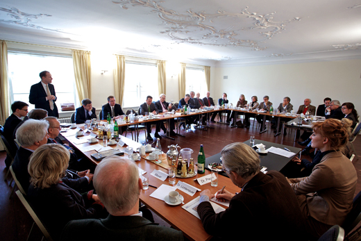 Die Expertenrunde auf Gut Kaden diskutierte zum ersten Mal über die Zukunft der Gemeinschaftswährung Euro. Wie geht es mit dem Euro weiter? Spaltet sich die Währungsunion in eine Nord- und Südzone auf? Oder bricht sie ganz auseinander? Kehren die nationalen Währungen wie D-Mark, französischer Franc oder griechische Drachme zurück? Oder wird der Euro eine stabile Weltleitwährung und etabliert sich neben dem US-Dollar, dem Schweizer Franken und dem chinesischen Renminbi als Reservewährung? Diesen Fragen hat sich die Stiftung Marktwirtschaft angenommen. Eingeladen waren Wissenschaftler, Politiker, Journalisten und Vertreter der Wirtschaft.