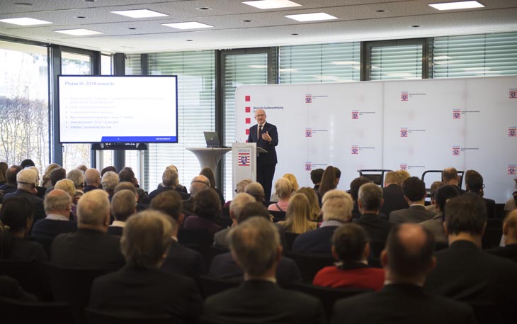 Bei den 7. Berliner Gesprächen zum Finanzplatz, einer gemeinsamen Veranstaltung der Hessischen Landesvertretung und der Stiftung Marktwirtschaft, sprach der Chefvolkswirt der Europäischen Zentralbank (EZB) Philip R. Lane am 5. Februar 2020 über „Die Zukunft des Euro – Bewährt sich die Gemeinschaftswährung?“. Lane betonte, dass es wichtig sei, die 20-jährige Geschichte des Euro richtig einzuordnen, bevor man über dessen Zukunft sprechen könne: der Aufstieg Chinas, die Transformationen in Zentral- und Osteuropa, technologische Innovationen, Globalisierung und starke Schwankungen bei Ölpreis und Dollar. Solche strukturellen Veränderungen stellten für jedes Geldsystem eine Herausforderung dar, so dass die eigentliche Frage sei, ob der Euro die Folgen verstärkt oder zu deren Bewältigung beigetragen habe. Vor diesem Hintergrund unterschied der EZB-Chefvolkswirt drei Phasen seit der Einführung des Euros bis heute: