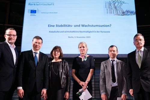 Valdis Dombrovskis, Vizepräsident der Europäischen Kommission für Euro und Sozialen Dialog, stellte dazu die aktuellen Pläne und Zielvorstellungen der Kommission vor. Eine Einschätzung aus italienischer Perspektive gab Pier Carlo Padoan, Wirtschafts- und Finanzminister Italiens. Mit weiteren renommierten Experten aus Politik und Wissenschaft wurde darüber diskutiert, wie stabile Finanzen und nachhaltiges Wirtschaftswachstum in der Eurozone erreicht werden können.
