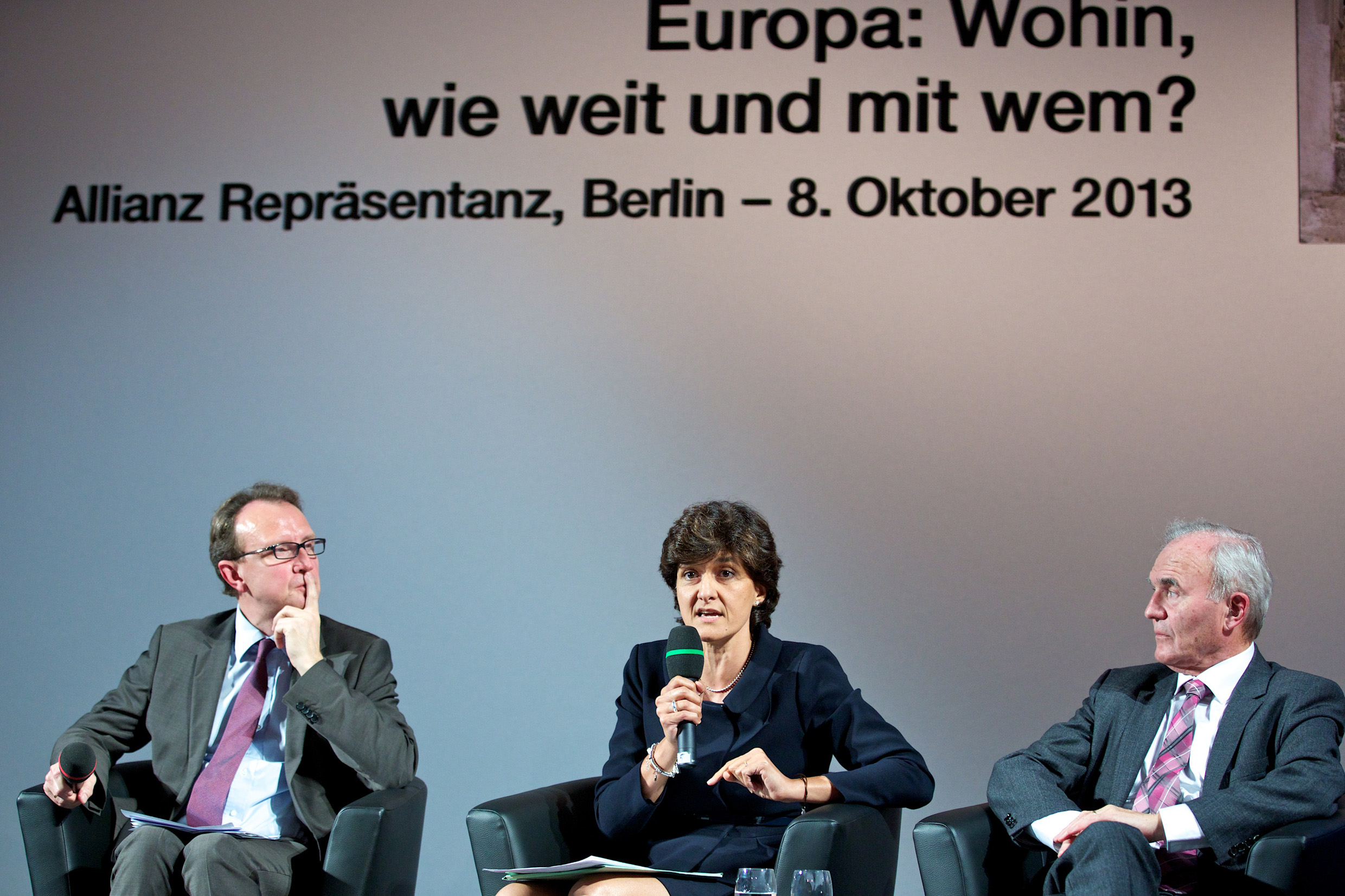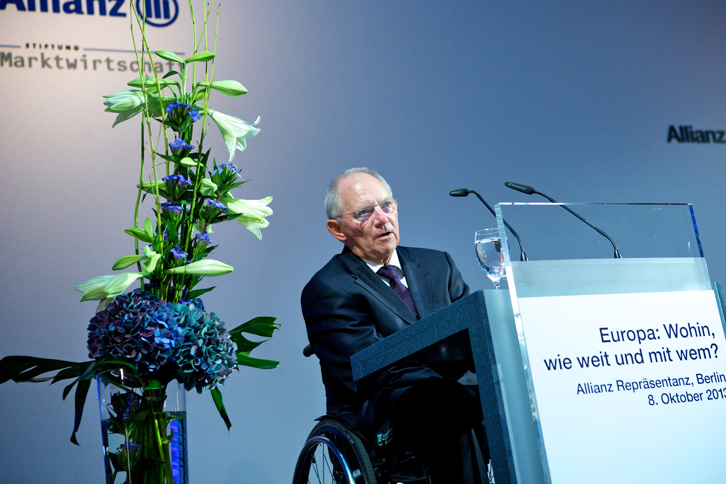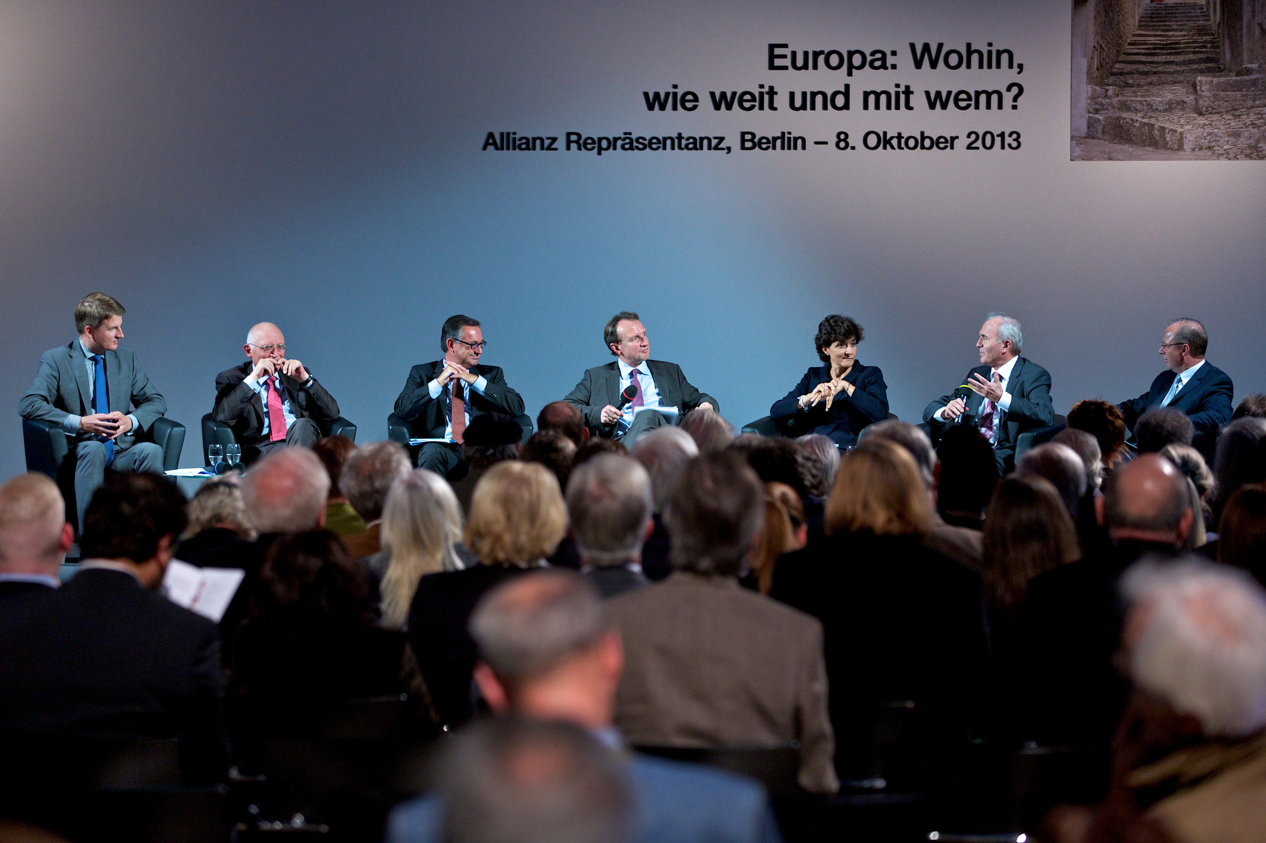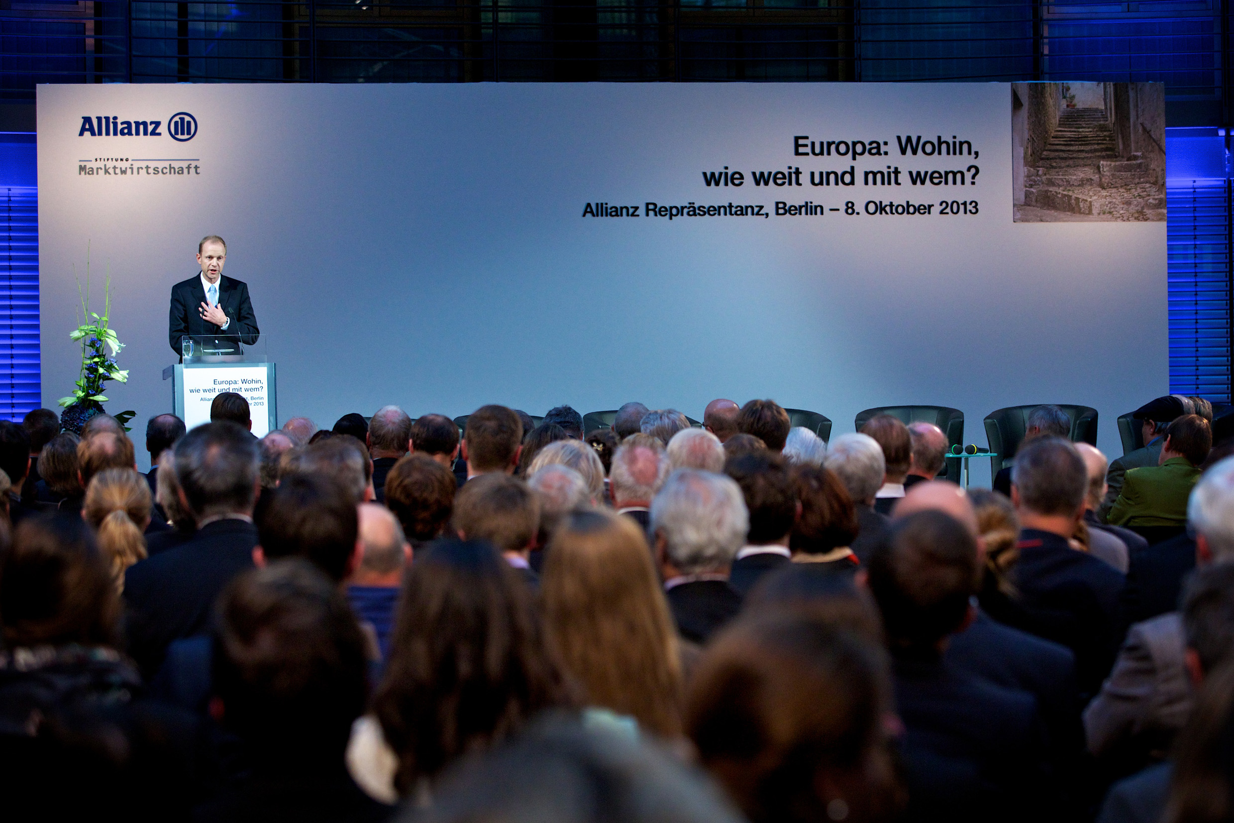 Bislang wurde vor allem Zeit gewonnen – aber wozu? Wohin sollen Europa und seine Währung gehen, wie weit und mit wem? Die Stiftung Marktwirtschaft und Allianz SE haben am 8. Oktober 2013 zu einer Tagung nach Berlin geladen, um nach einer Antwort auf diese Fragen zu suchen. Bundesfinanzminister Dr. Wolfgang Schäuble und Bundesbankpräsident Dr. Jens Weidmann haben die Währungsunion als Stabilitätsunion in den Fokus genommen. In der anschließenden Debatte diskutierten u.a. Professor Günter Verheugen, Professor Otmar Issing und Professor Michael Heise, der Chefvolkswirt der Allianz SE, über die Zukunft Europas.