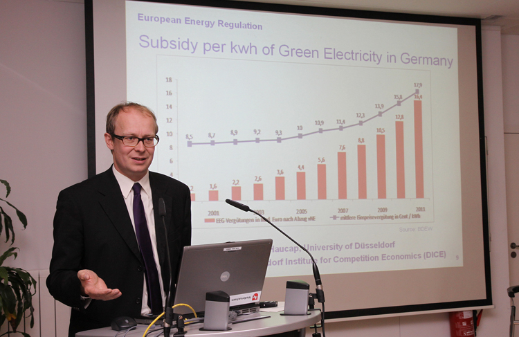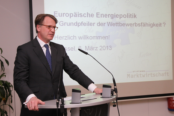 Die Stiftung Marktwirtschaft fragte am 06.03.2013 beim EU-Kommissar für Energie Günther H. Oettinger in Brüssel nach, warum eine gemeinsame europäische Politik auf diesem Gebiet überhaupt erforderlich ist. Die Erwartungen der Industrie wurden von Dr. Kurt Bock, dem Vorsitzenden des Vorstands der BASF SE, erläutert. Zu den Herausforderungen für Europa, die sich durch den Klimawandel in der Zukunft ergeben, nahm Professor Coby van der Linde Stellung. Zuvor zeigte Prof. Justus Haucap die Grenzen der Regulierung im Energiesektor auf.
