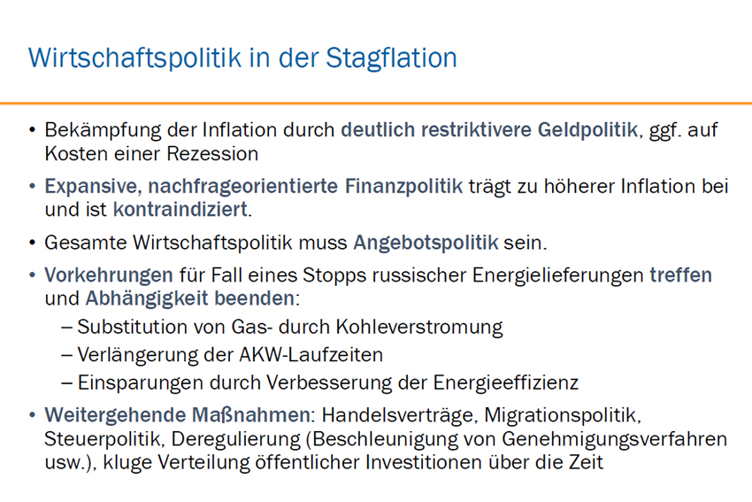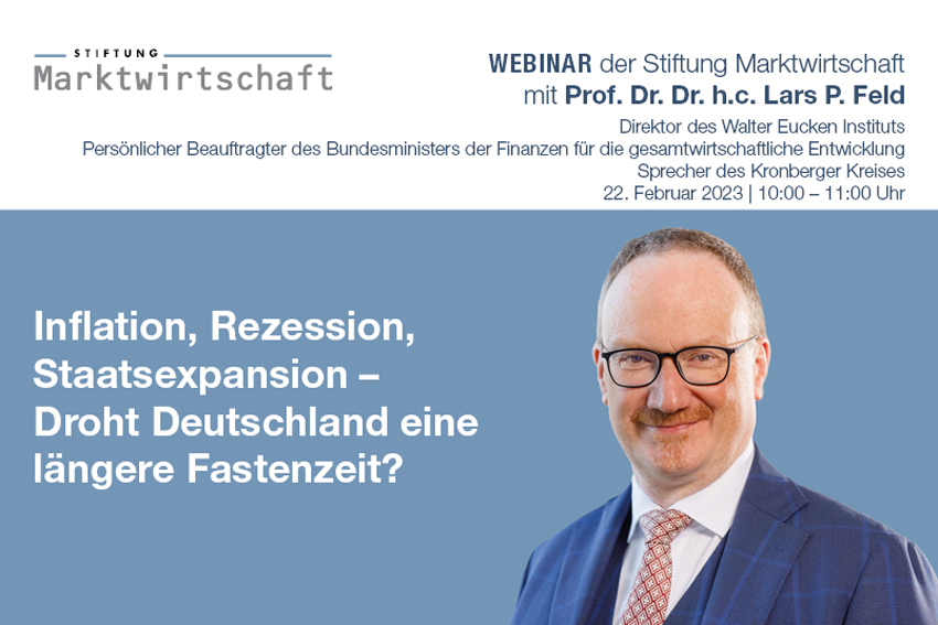 Prof. Dr. Dr. h.c. Lars P. Feld (Direktor des Walter Eucken Instituts, Persönlicher Beauftragter des Bundesministers der Finanzen für die gesamtwirtschaftliche Entwicklung und Sprecher des Kronberger Kreises) gab im Rahmen dieses Webinars einen ökonomischen Ausblick für das Jahr 2023 und zeigte Lösungswege hinsichtlich der aktuell zentralen wirtschaftspolitischen Herausforderungen auf.