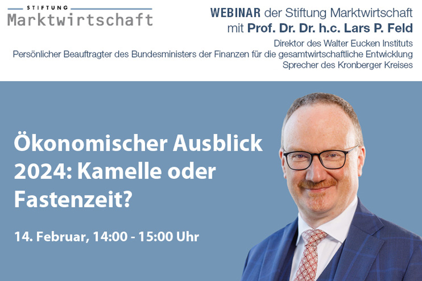 Der Sprecher des Kronberger Kreises, Prof. Dr. Dr. h.c. Lars P. Feld (Direktor des Walter Eucken Instituts und Persönlicher Beauftragter des Bundesministers der Finanzen für die gesamtwirtschaftliche Entwicklung), gibt im Rahmen dieses Webinars einen ökonomischen Ausblick auf das Jahr 2024 und zeigt Lösungswege hinsichtlich der aktuell zentralen wirtschaftspolitischen Herausforderungen auf.